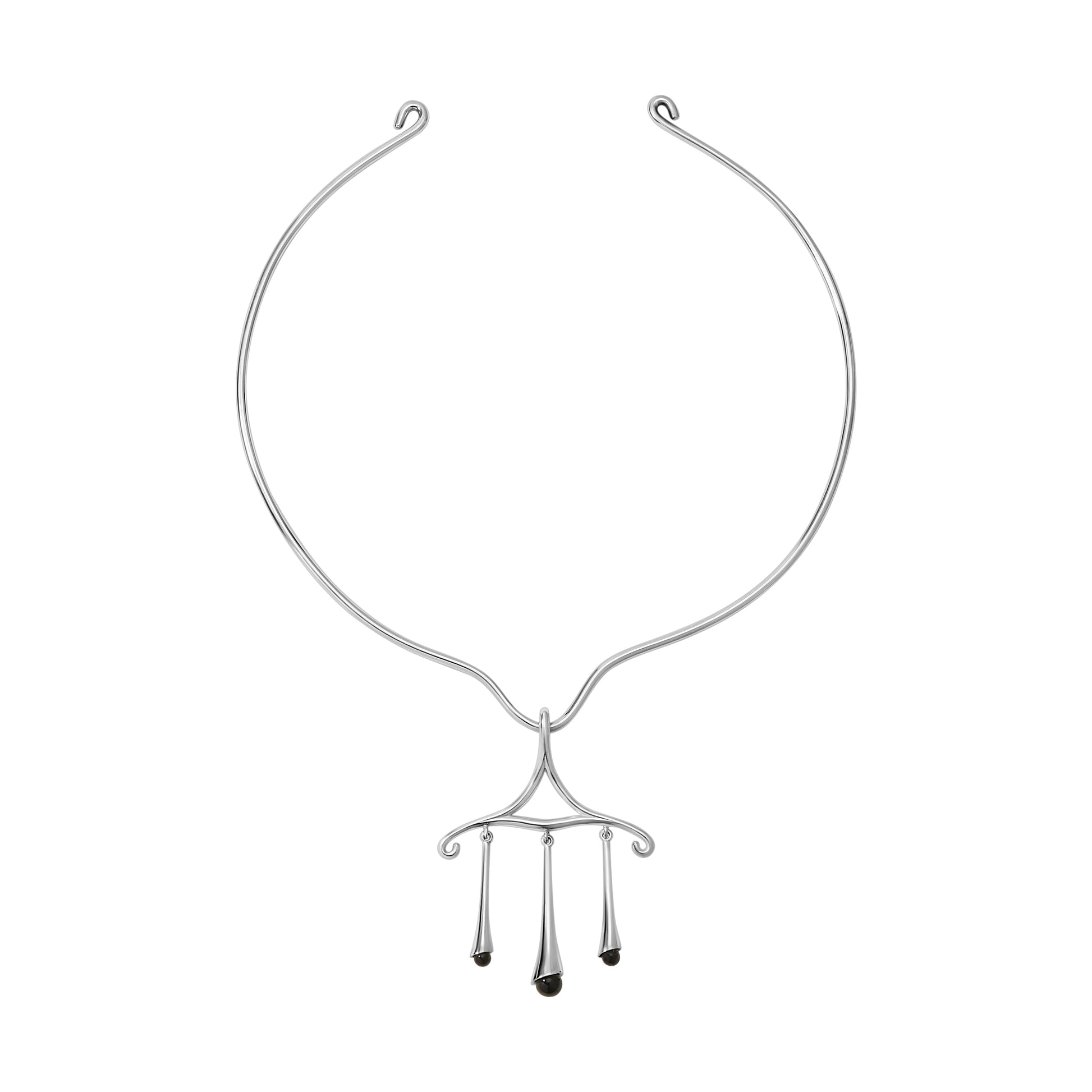 Statement sculptural tiered pendant featuring round onyx gemstone details. Made in solid sterling silver on an elegant loop. Fits our Scroll Collar Necklace
